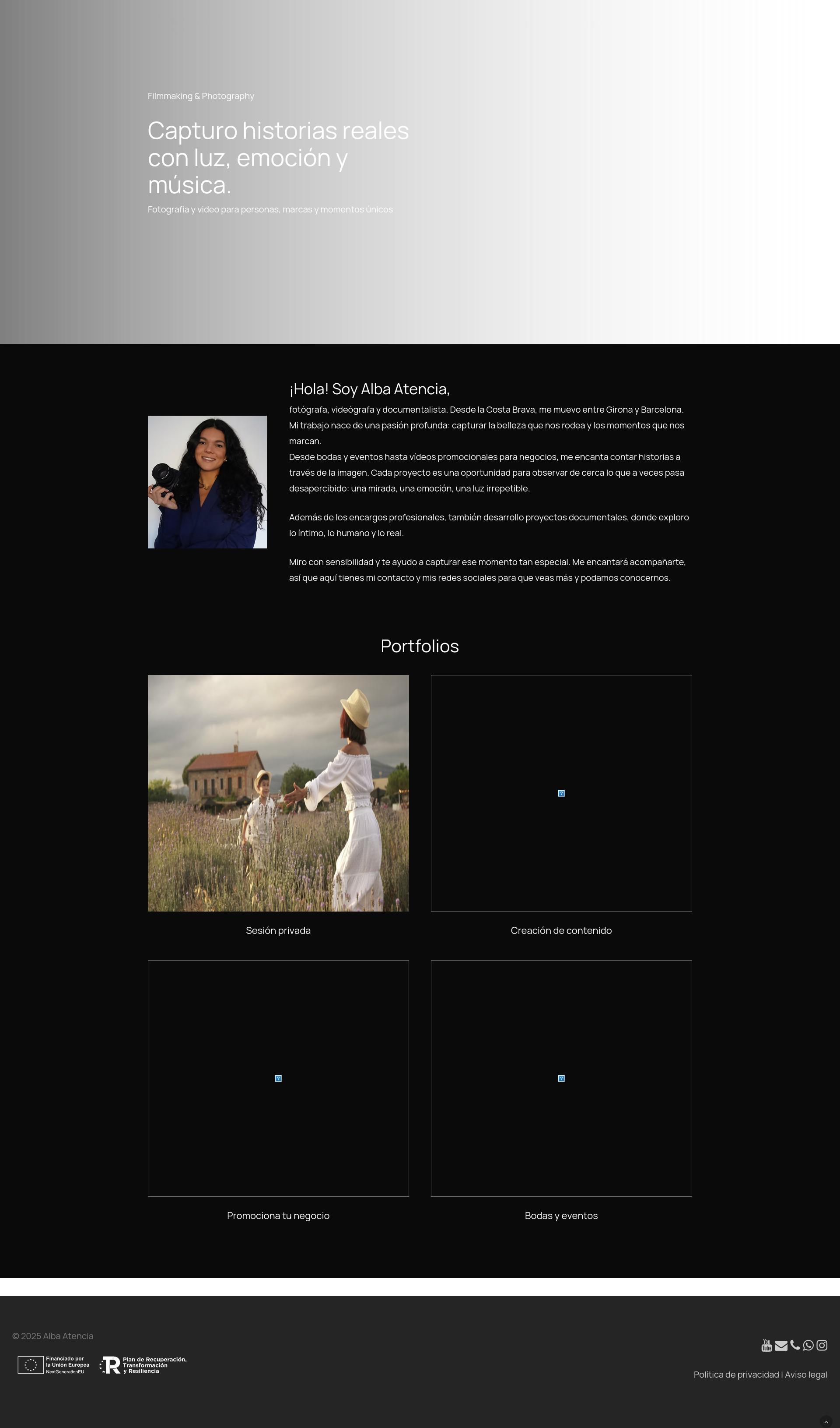 Fotógrafa, videógrafa y documentalista. Desde la Costa Brava, me muevo entre Girona y Barcelona. Mi trabajo nace de una pasión profunda: capturar la belleza que nos rodea y los momentos que nos marcan.