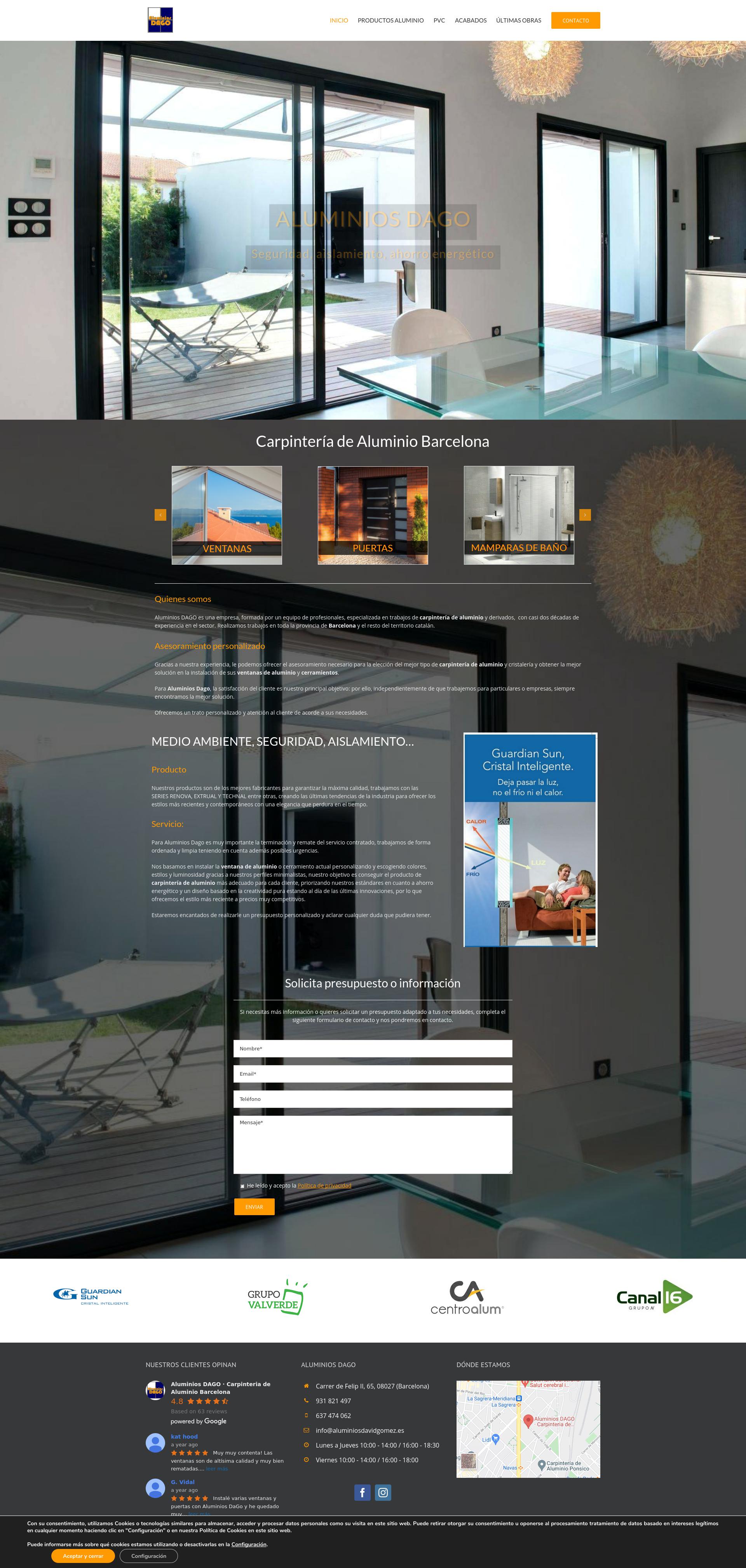 Aluminios DAGO es una empresa, formada por un equipo de profesionales, especializada en trabajos de carpintería de aluminio y derivados, con casi dos décadas de experiencia en el sector. Realizamos trabajos en toda la provincia de Barcelona | info@aluminiosdavidgomez.es | 931 821 497 | 637 474 062