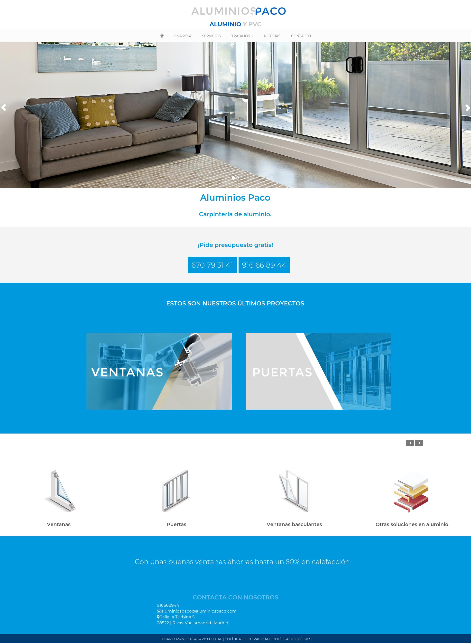 Puedes encontrarnos en: Calle la Turbina 5 28522 | Rivas-Vaciamadrid (Madrid) también puedes visitar nuestra web https://www.aluminiospaco.com/ y solicitar presupuesto a través del 916668944 o bien en el aluminiospaco@aluminiospaco.com ¡Te esperamos!