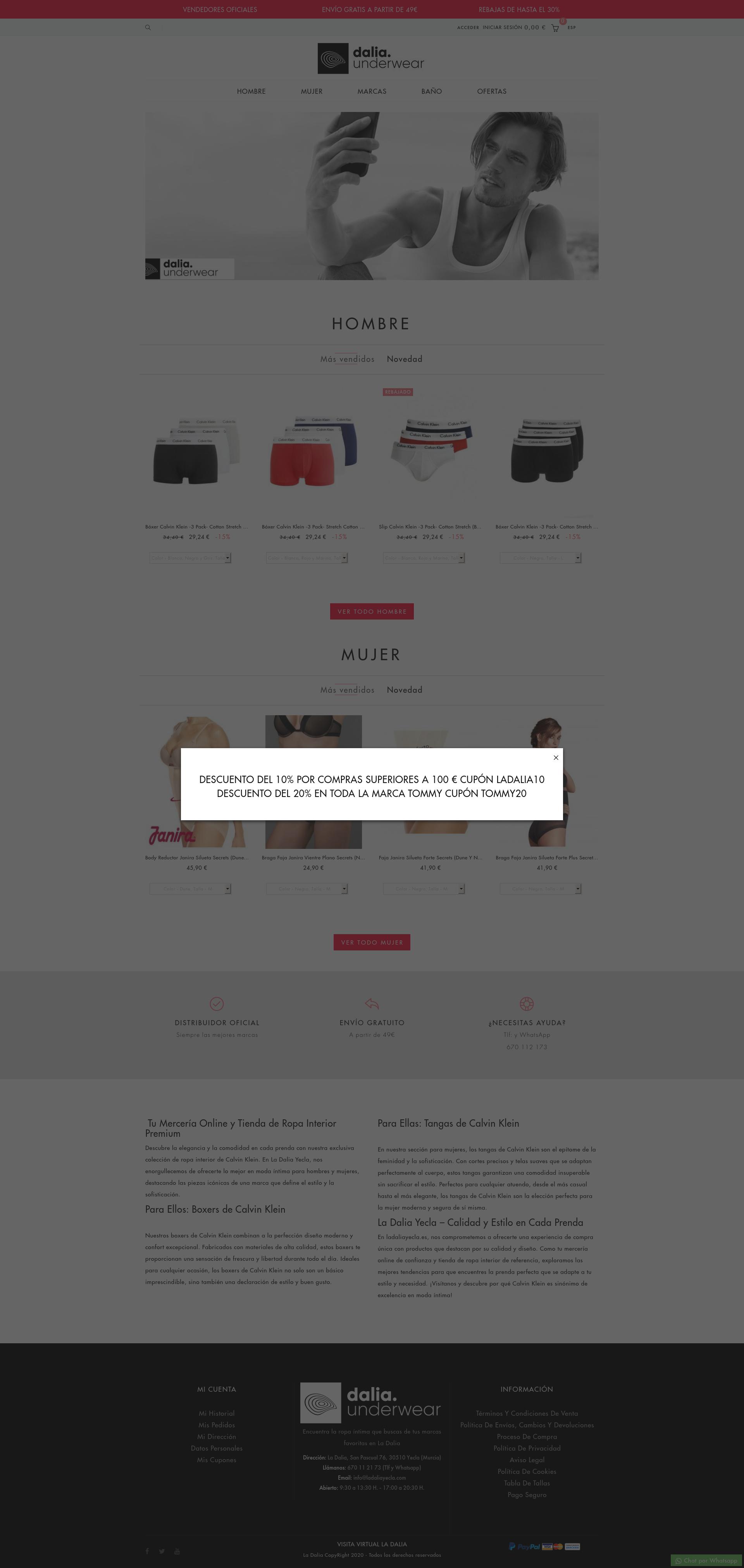 En su tienda online, La Dalia Yecla ofrece una extensa gama de productos para hombre y mujer, incluyendo calzoncillos, sujetadores, fajas, pijamas, camisetas interiores, bragas, bodys, pantys, leggings y lencería. Trabajan con marcas reconocidas como Calvin Klein, Emporio Armani, Tommy Hilfiger, Hugo Boss, Janira, Selene, Gisela, entre otras .