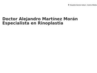 Doctor Alejandro Martínez Morán especialista en rinoplastia, licenciado en Medicina y Cirugía por la Universidad de Santiago de Compostela y especializado como MIR de «Otorrinolaringología» en el Hospital Universitario de La Coruña. Actualmente compagina su actividad pública en el Hospital de referencia coruñés con la actividad privada en el centro Hospital Quirón de La Coruña. Código sanitario C-15-003252.