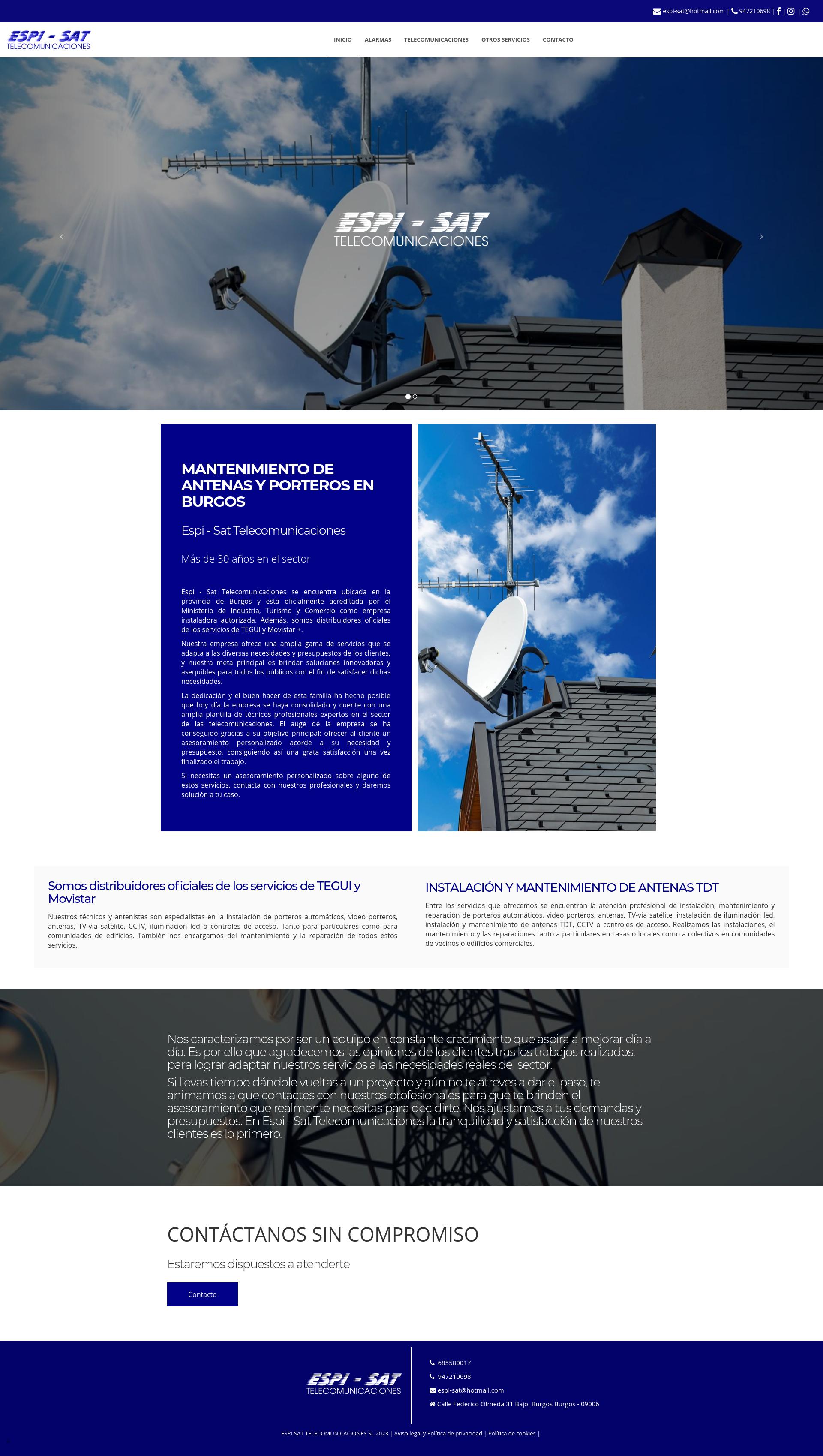 Espi - Sat Telecomunicaciones se encuentra ubicada en la provincia de Burgos y está oficialmente acreditada por el Ministerio de Industria, Turismo y Comercio como empresa instaladora autorizada. Además, somos distribuidores oficiales de los servicios de TEGUI y Movistar +. Nuestra empresa ofrece una amplia gama de servicios que se adapta a las diversas necesidades y presupuestos de los clientes, y nuestra meta principal es brindar soluciones innovadoras y asequibles para todos los públicos con el fin de satisfacer dichas necesidades.