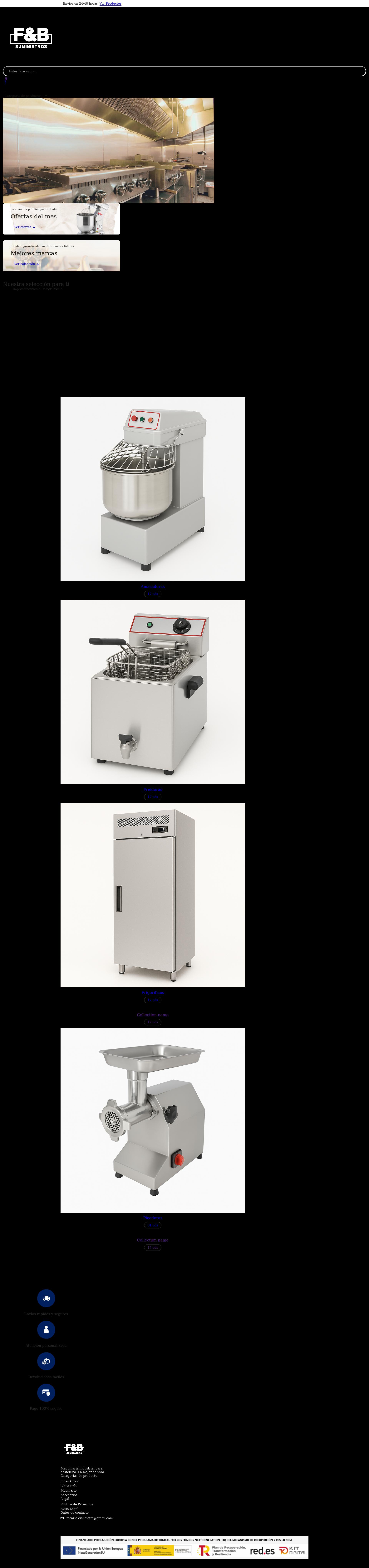En F&B Suministros llevamos 20 años ofreciendo soluciones integrales en maquinaria de hostelería. Sabemos que el equipamiento es clave para el éxito de cualquier negocio del sector, por eso seleccionamos cuidadosamente cada producto, garantizando eficiencia, durabilidad y el mejor rendimiento.