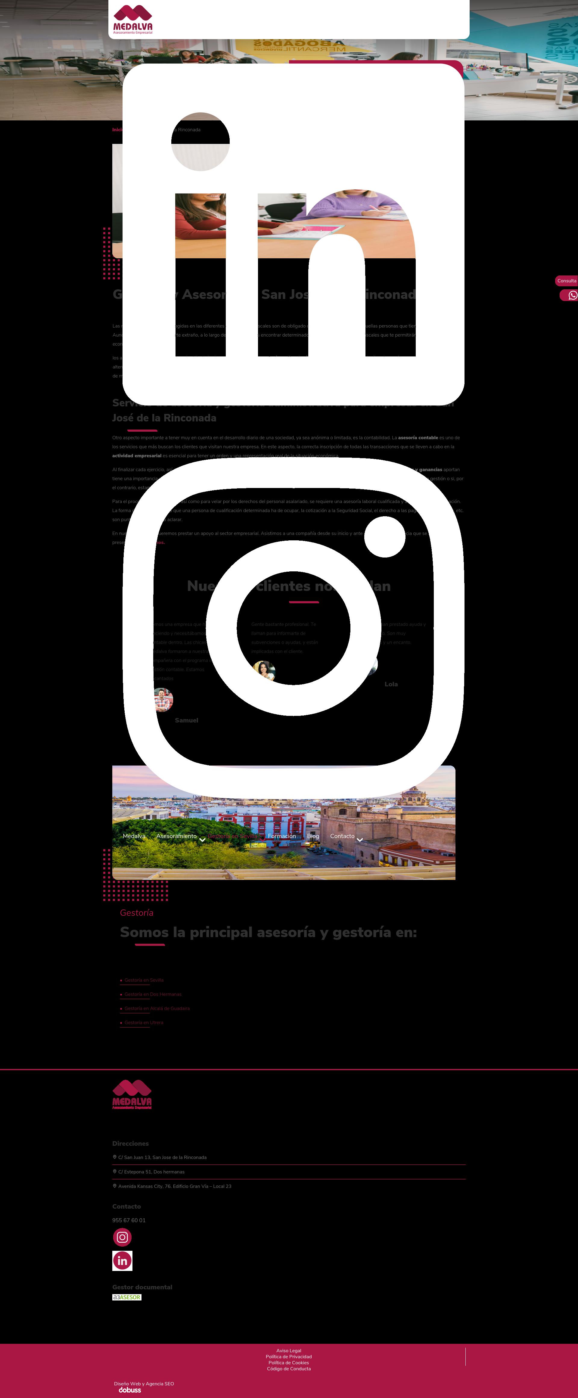 "MEDALVA - Gestoría en San José de la Rinconada. Ayudamos a autónomos y empresas de San José a simplificar su día a día mediante un servicio profesional de gestoría laboral, fiscal y contable. Como referentes de gestoría en Sevilla, nuestro enfoque es 100% resolutivo: detectamos debilidades y las transformamos en eficiencia para tu negocio. Formamos equipo contigo, integrándonos en tu estructura para que la contabilidad y el cumplimiento de las obligaciones fiscales sean el motor de tu crecimiento. ¡Pide tu cita ya en el 955 67 60 01!"