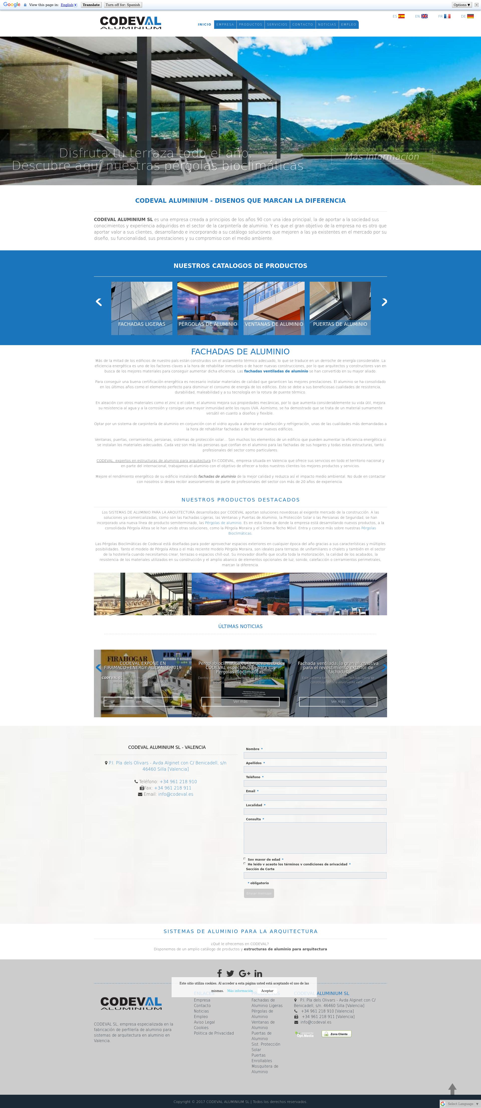 CODEVAL ALUMINIUM SL es una empresa creada a principios de los años 90 con una idea principal, la de aportar a la sociedad sus conocimientos y experiencia adquiridos en el sector de la carpintería de aluminio. Y es que el gran objetivo de la empresa no es otro que aportar valor a sus clientes, desarrollando e incorporando a su catálogo soluciones que mejoren a las ya existentes en el mercado por su diseño, su funcionalidad, sus prestaciones y su compromiso con el medio ambiente.