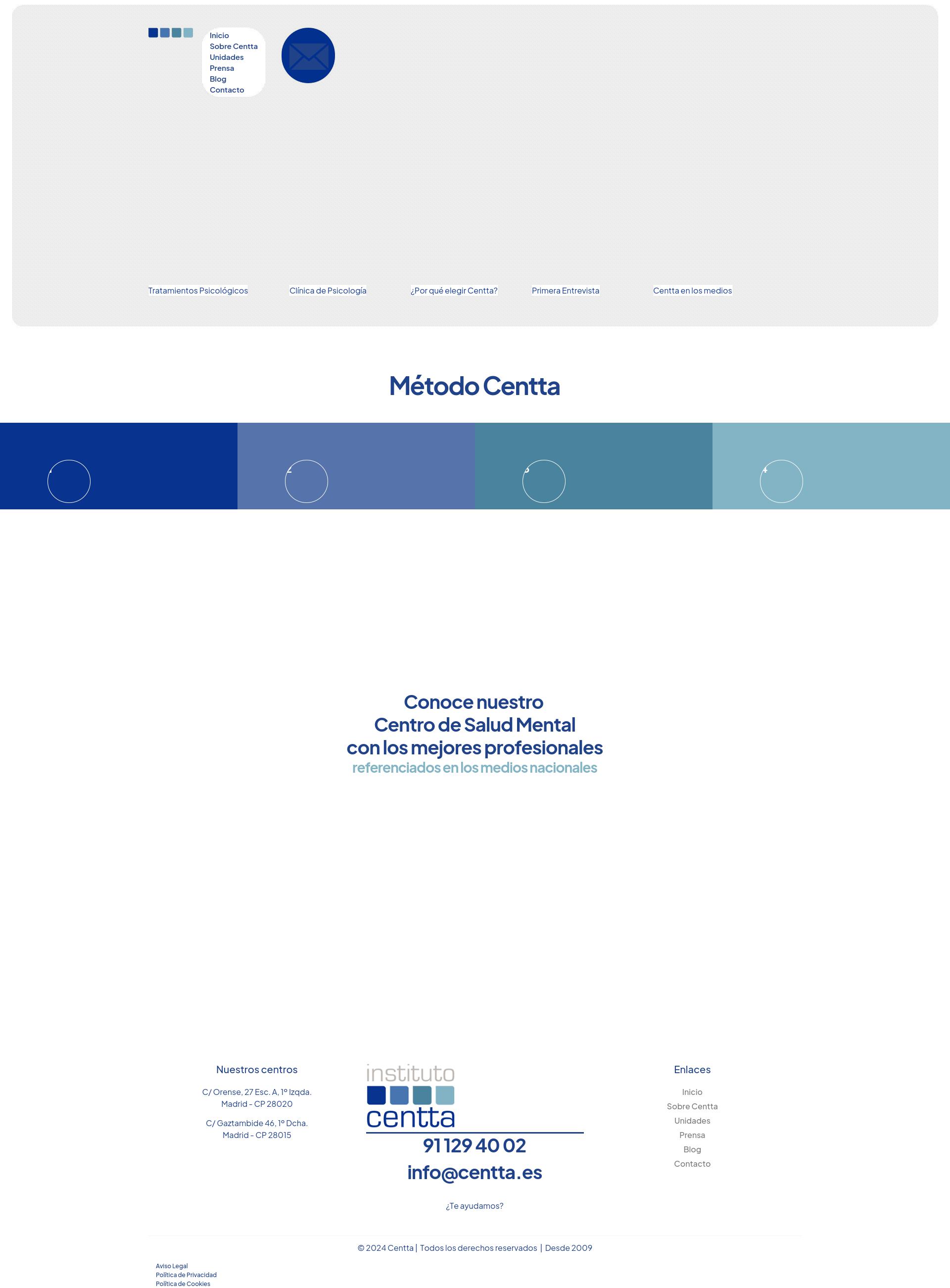 Centta es un centro especializado en salud mental que ofrece servicios de psicología y psiquiatría en diversas áreas, incluyendo trastornos del neurodesarrollo, terapia de pareja, psicología adolescente, adicciones y nutrición, entre otros. Su equipo multidisciplinario se enfoca en brindar tratamientos personalizados y confidenciales, coordinándose para atender a cada paciente de forma integral.