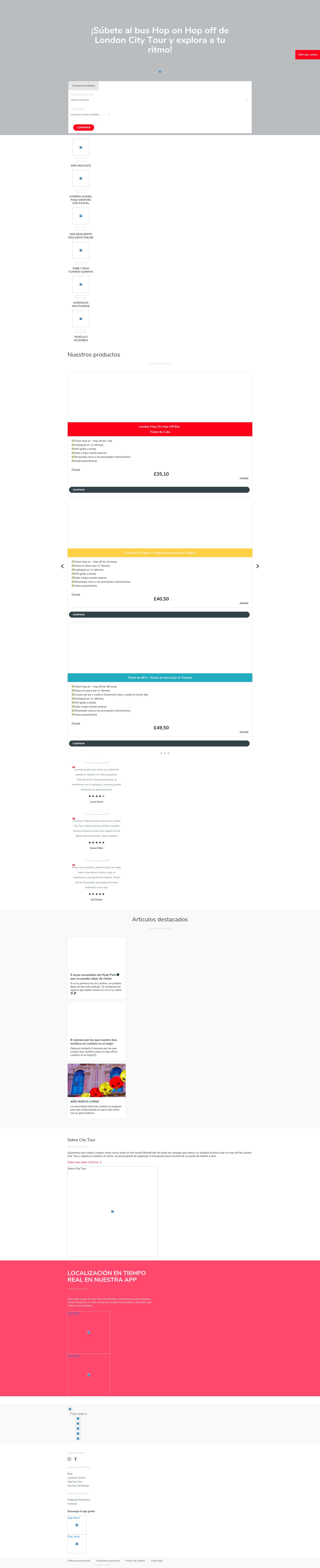 Sube al bus turístico de Hop on Hop off de London City Tour, crea tu propio itinerario y visita la ciudad a tu ritmo. ?10% dto. online! ¡Queremos que visites Londres como nunca antes lo has hecho! Benefíciate de todas las ventajas que ofrece un autobús turístico hop-on hop-off de London City Tour y explora la ciudad a tu ritmo, sin preocuparte de organizar el transporte para moverte de un punto de interés a otro.