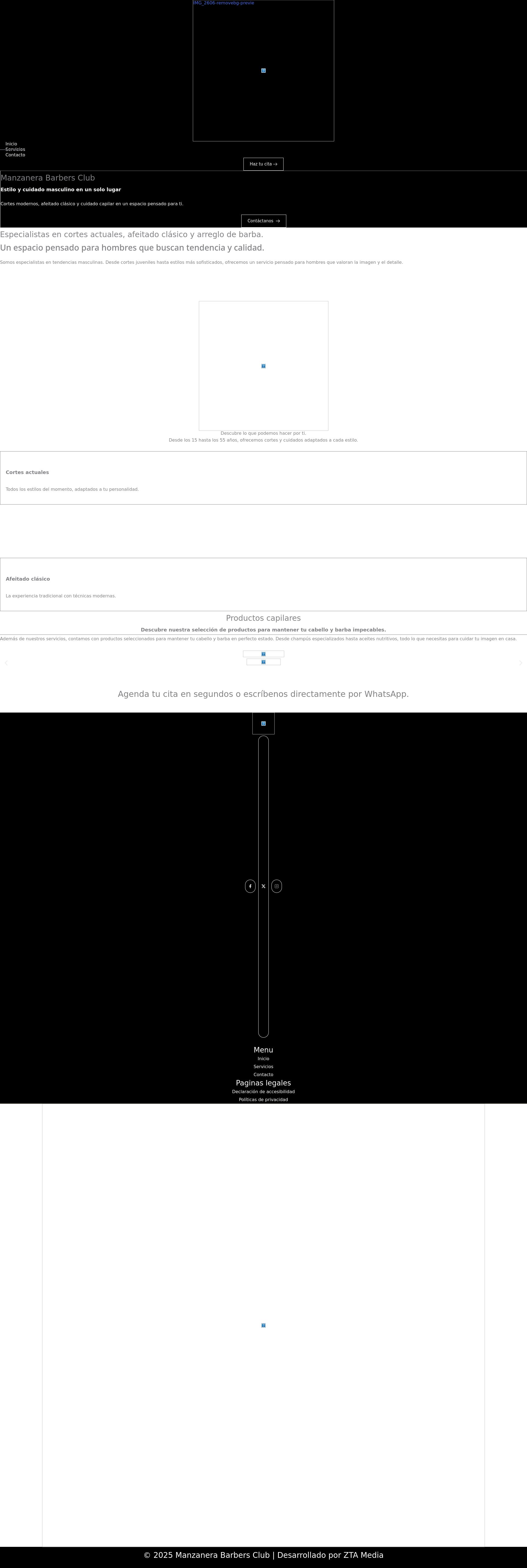 Manzanera Barbers Club es un espacio dedicado al estilo y cuidado masculino, ofreciendo cortes modernos, afeitado clásico y arreglo de barba en un ambiente pensado para hombres que valoran la imagen y el detalle. Atendemos desde jóvenes de 15 años hasta adultos de 55, adaptando cada servicio a la personalidad y estilo de nuestros clientes. Además de nuestros servicios profesionales, contamos con una selección de productos capilares y para barba de alta calidad. Agenda tu cita en segundos o contáctanos por WhatsApp y disfruta de la experiencia completa de un club de estilo masculino.