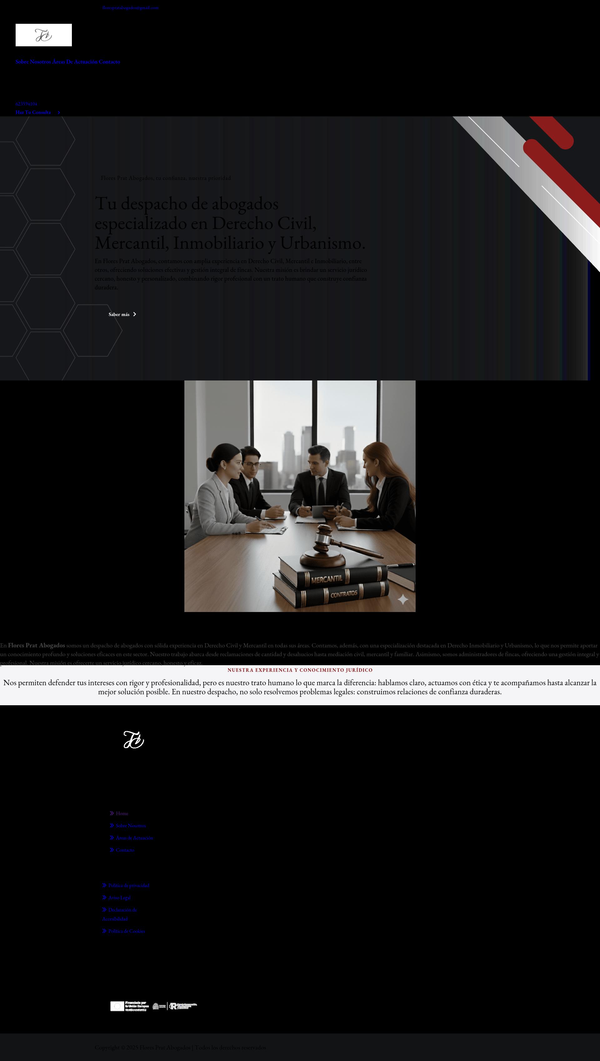 En Flores Prat Abogados, contamos con una amplia trayectoria ofreciendo asesoramiento jurídico especializado en Derecho Civil y Mercantil, áreas en las que estamos consolidados por la calidad técnica y el trato cercano con el cliente. Uno de nuestros pilares fundamentales es el enfoque específico en Derecho Inmobiliario y Urbanismo, lo que nos ha permitido intervenir en numerosas operaciones complejas, ofreciendo soluciones eficaces tanto a particulares como a profesionales del sector.