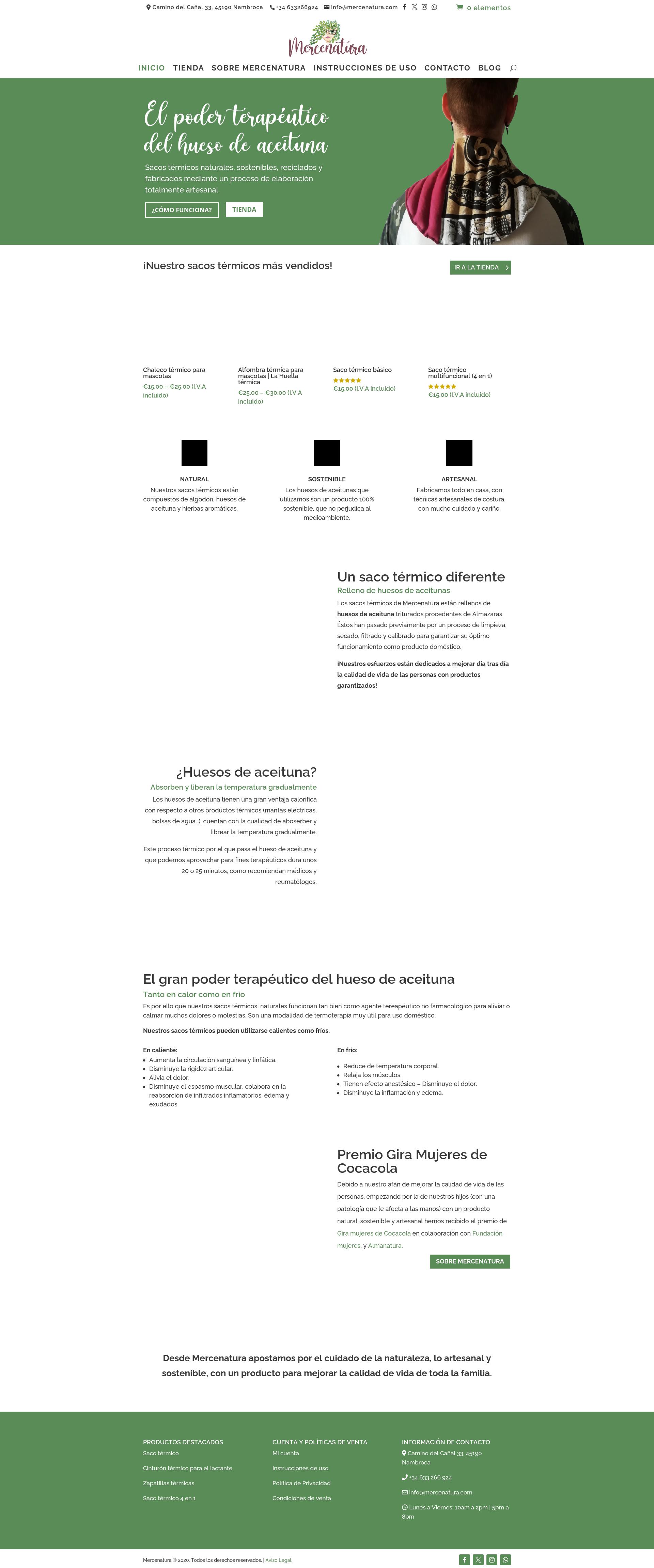 Mercenatura es una empresa familiar española, fundada en 2005, que se dedica a la creación de productos térmicos artesanales y sostenibles, utilizando el hueso de aceituna como elemento base.