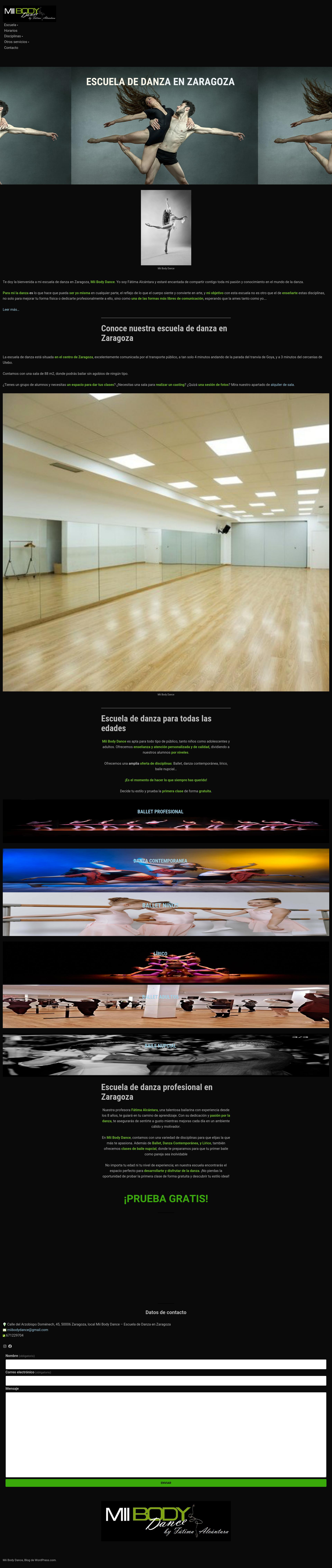 Mii Body Dance es una escuela de danza y artes marciales situada en el centro de Zaragoza. Nuestra ubicación es de fácil acceso mediante transporte público, con varias líneas de autobús, el tranvía y la estación de cercanías Goya, a solo cuatro minutos a pie. Ofrecemos una formación de alta calidad tanto para adultos como para niños, asegurando una atención personalizada que se adapta a todos los niveles de habilidad y edad de nuestros alumnos. Nuestra oferta educativa incluye disciplinas como ballet, danza contemporánea, danza lírica, baile nupcial, artes marciales y defensa personal. Te invitamos a explorar tu pasión por la danza y las artes marciales. Prueba tu primera clase de forma gratuita y descubre tu estilo ideal.