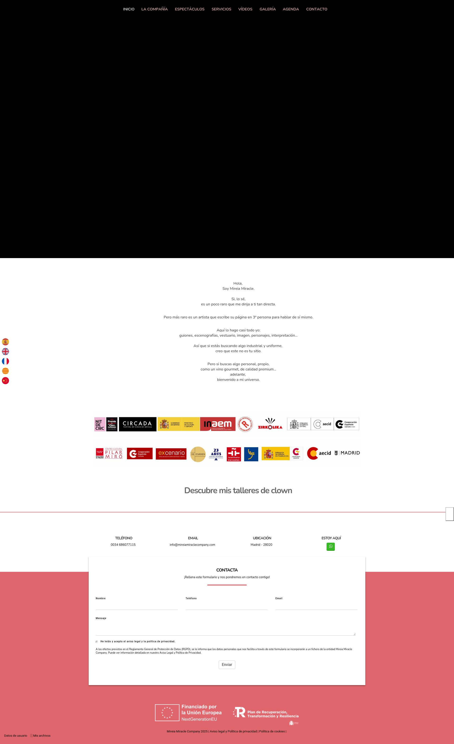 Mireia Miracle Company es la compañía de la directora, actriz, bailarina y clown Mireia Miracle. La compañía se crea en 2017 dando a luz su primer espectáculo: ROJO. Se estrena en 2017 en el FESTIVAL DE CIRCO CIRCADA ganando el premio Circaire. En 2018 recibe el Premio Zirkólika Artista Emergente siendo además ROJO, nominado a Mejor Espectáculo de Calle y Mejor Espectáculo de clown. En 2019 Rojo recibe el sello de "Espectáculo recomendado" por RED ESCENA.