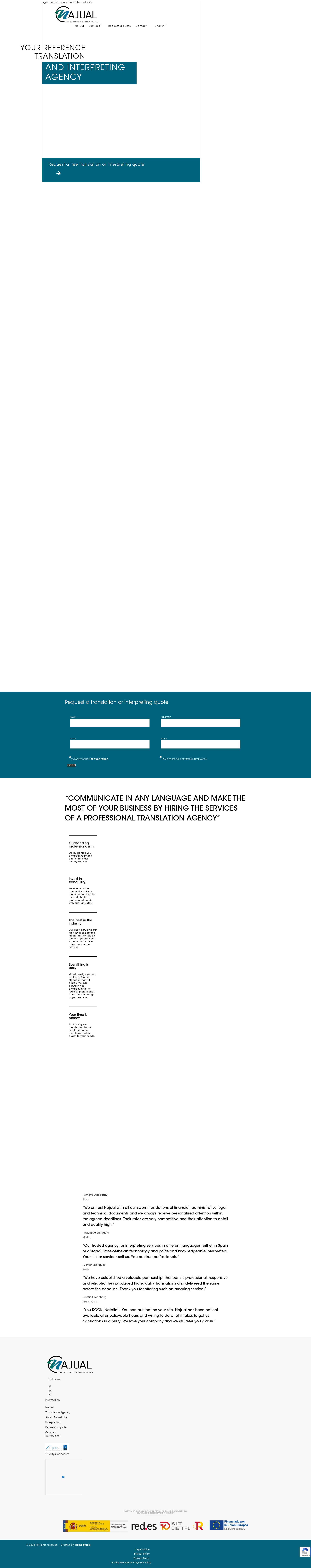 ajual Traductores & Intérpretes es una agencia que ofrece servicios de traducción e interpretación con traductores nativos en Madrid. Tras más de 20 años de experiencia, contamos con profesionales en todos los idiomas. Además, somos especialistas en ofrecer servicios de traducción e interpretación en diversos campos técnicos, como ingeniería del transporte, patentes y textos de propiedad intelectual, así como jurídico-administrativos, comerciales o científicos, entre muchos otros. Nuestros clientes son nuestra prioridad, y estamos abiertos a firmar acuerdos de confidencialidad de así requerírnoslo.