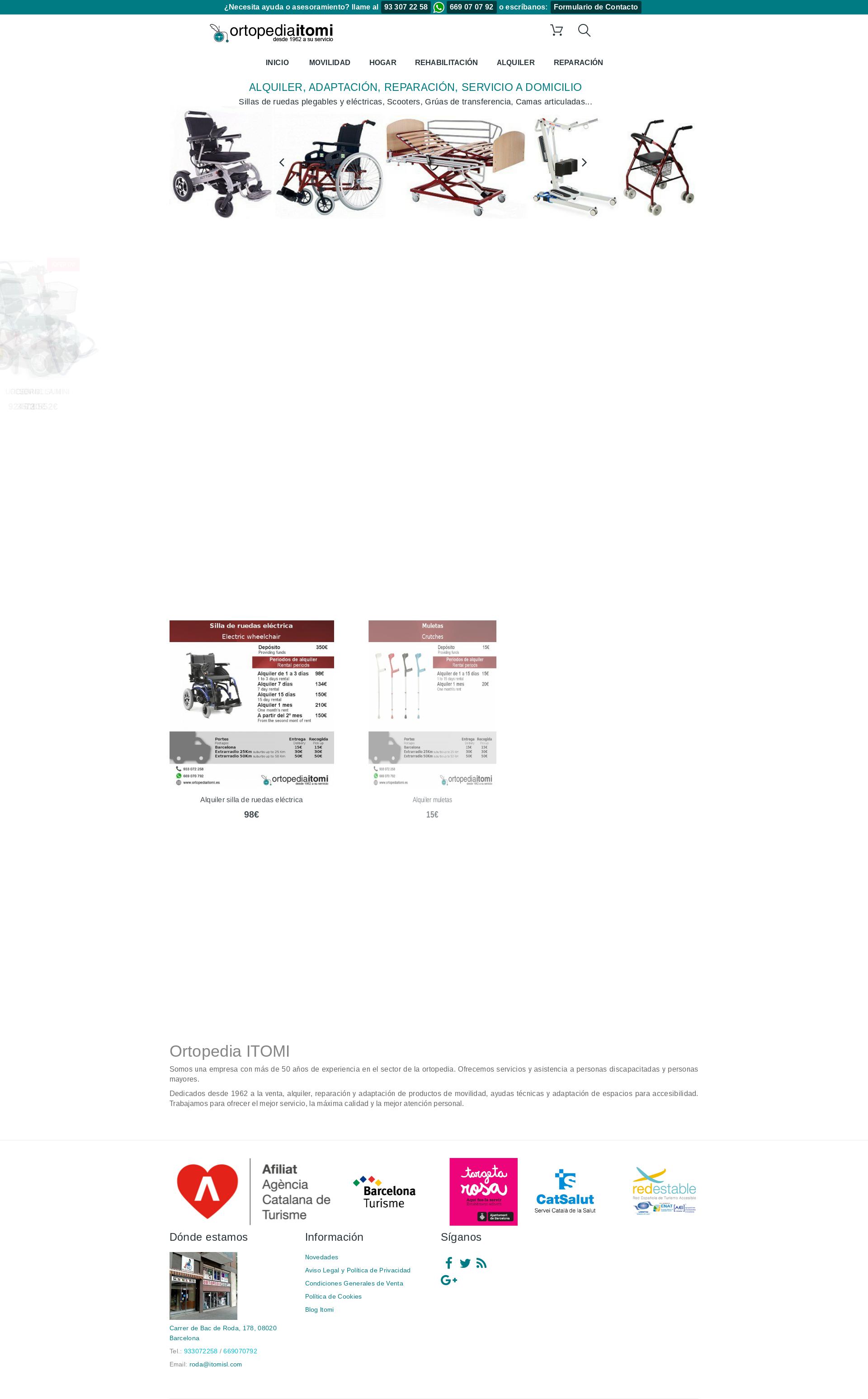 La Ortopedia Itomi lleva más de 50 años en el sector de la ortopedia en Barcelona. Todo un equipo de profesionales experto en alquiler y venta de productos ortopédicos, así como alquiler de sillas de ruedas o de grúas para enfermos.