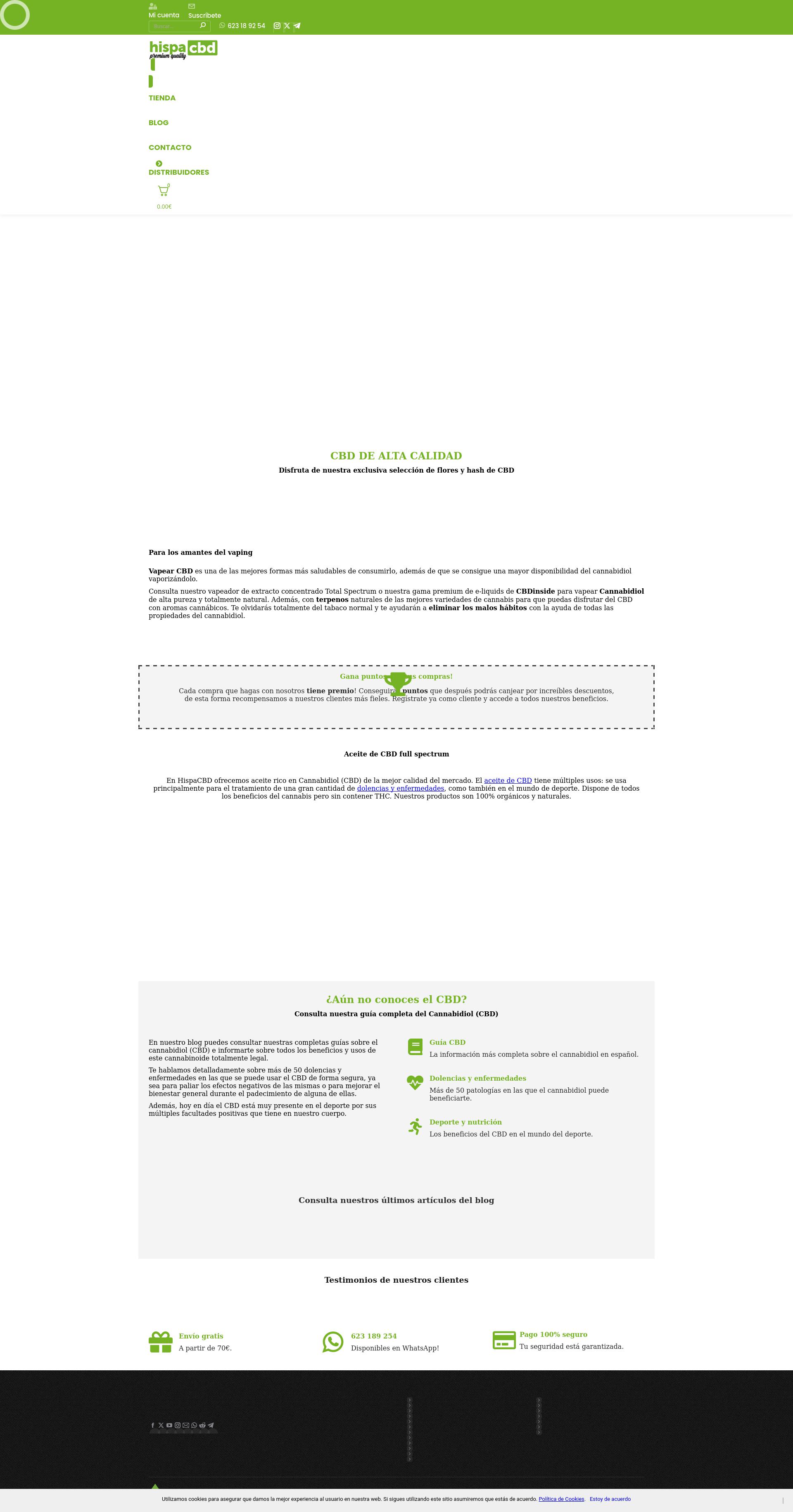 HispaCBD es una tienda en línea especializada en productos de cannabidiol (CBD) de alta calidad. Ofrece una amplia gama de artículos, incluyendo flores, hachís, aceites, vaporizadores y cremas cosméticas, todos derivados de cultivos orgánicos certificados por la Unión Europea. Además, proporciona información detallada sobre el uso y beneficios del CBD, así como guías para tratar diversas dolencias y mejorar el bienestar general.