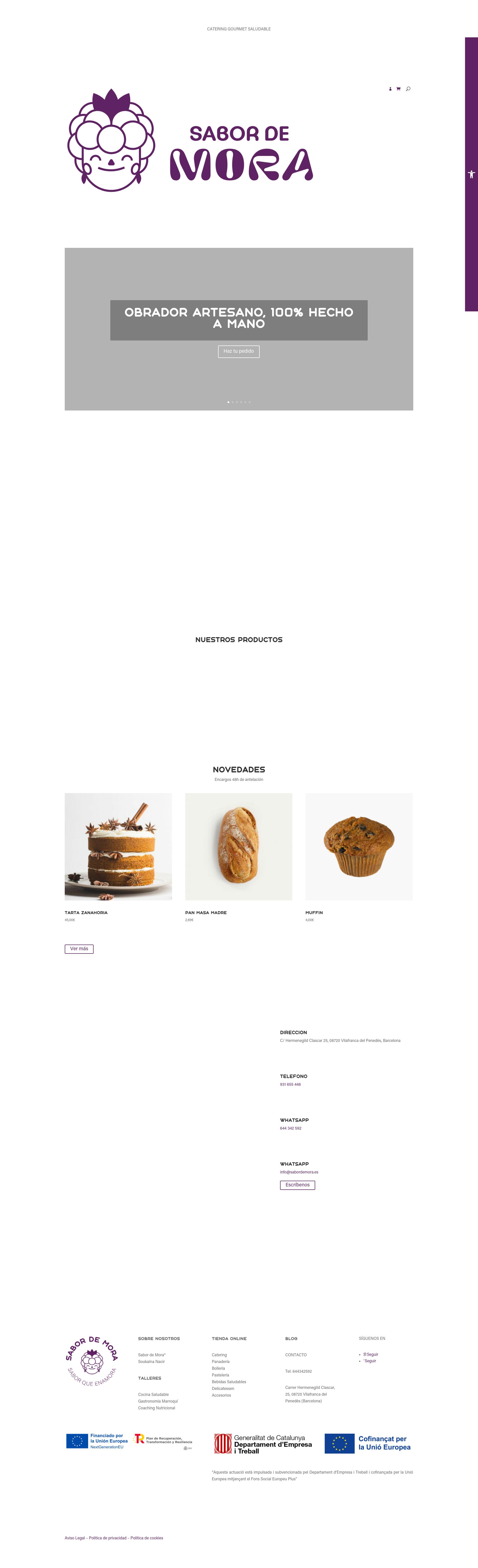 En Sabor de Mora, combinamos tradición e innovación en cada bocado. Nuestro obrador artesano ofrece productos 100% saludables, elaborados con ingredientes frescos, reales y de proximidad, cuidadosamente seleccionados para garantizar la máxima calidad. 644 34 25 92 - info@sabordemora.com - Carrer Hermenegild Clascar, 25 - 08720