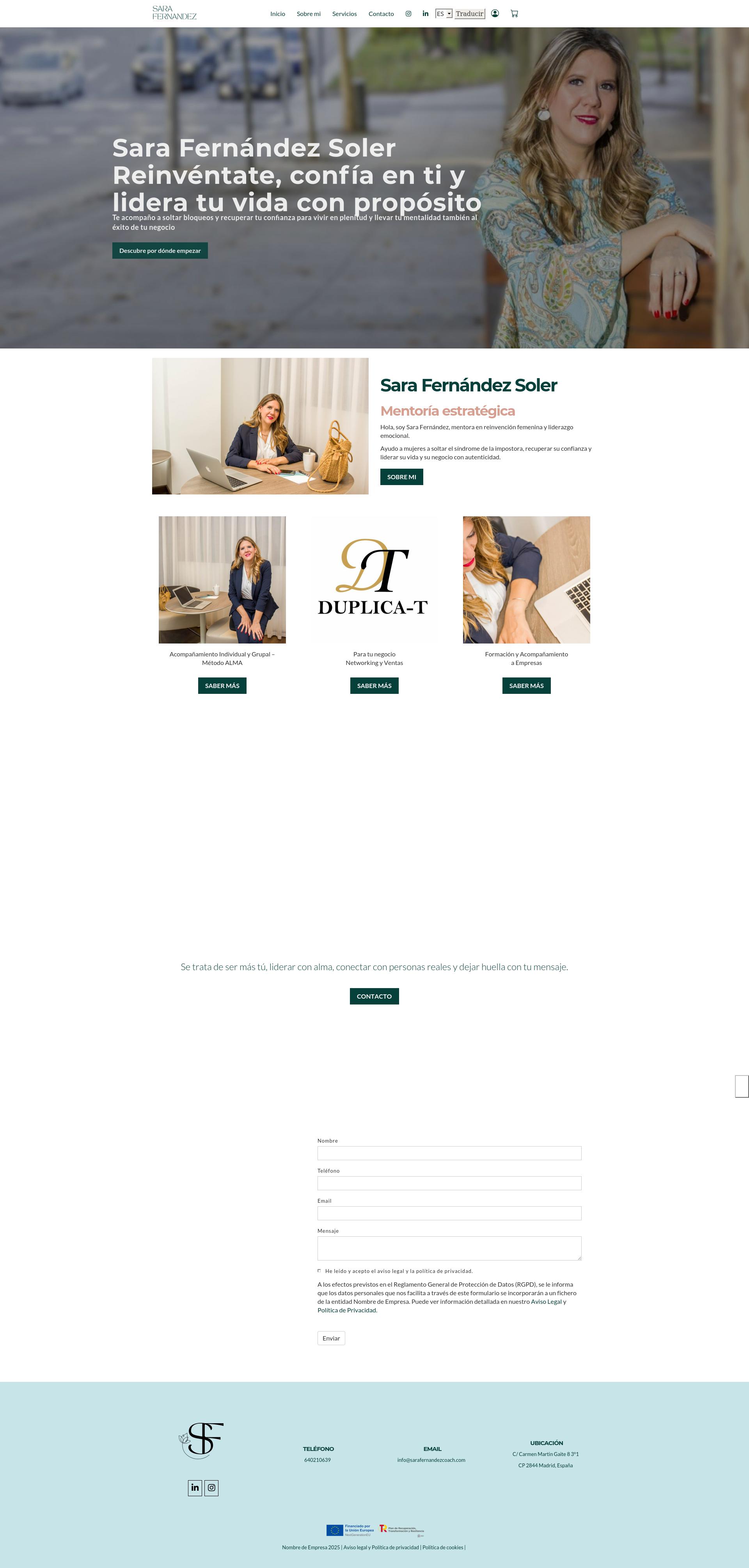 Hola, soy Sara Fernández, mentora en reinvención femenina y liderazgo emocional.