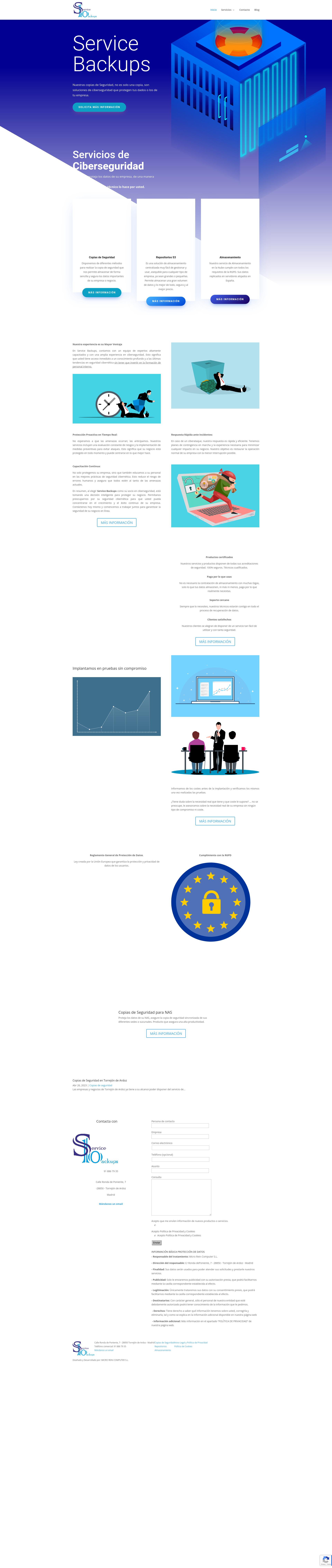Service Backups (Microrein), es una empresa de Servicios de Ciberseguridad que gestiona y protege los datos de las empresas clientes. Tienen varios servicios entre lo que destacan; Copias de seguridad, Almacenamiento de datos y Repositorios S3.