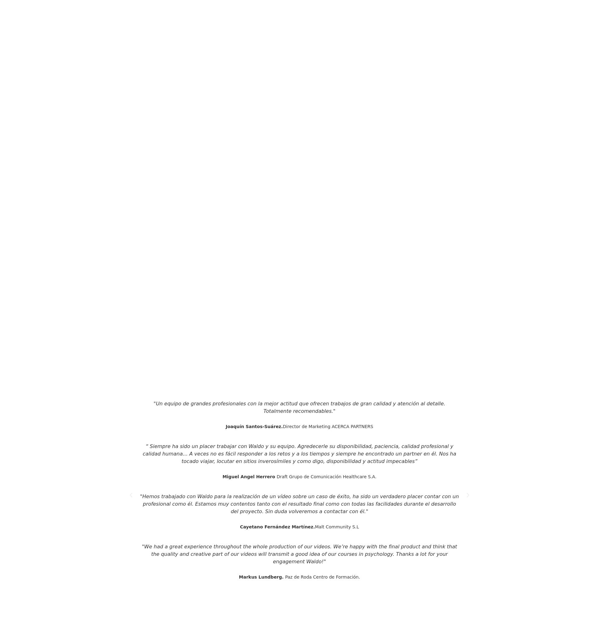 Creatividad, técnica y compromiso definen a Waldo Capote, filmmaker profesional afincado en Madrid. Con experiencia en toda España, realiza vídeos corporativos, artísticos y documentales que destacan por su cuidado estético. Ha trabajado con marcas, instituciones y artistas, siempre ofreciendo un enfoque personalizado. Su portfolio demuestra su capacidad para adaptarse a cualquier historia y formato.