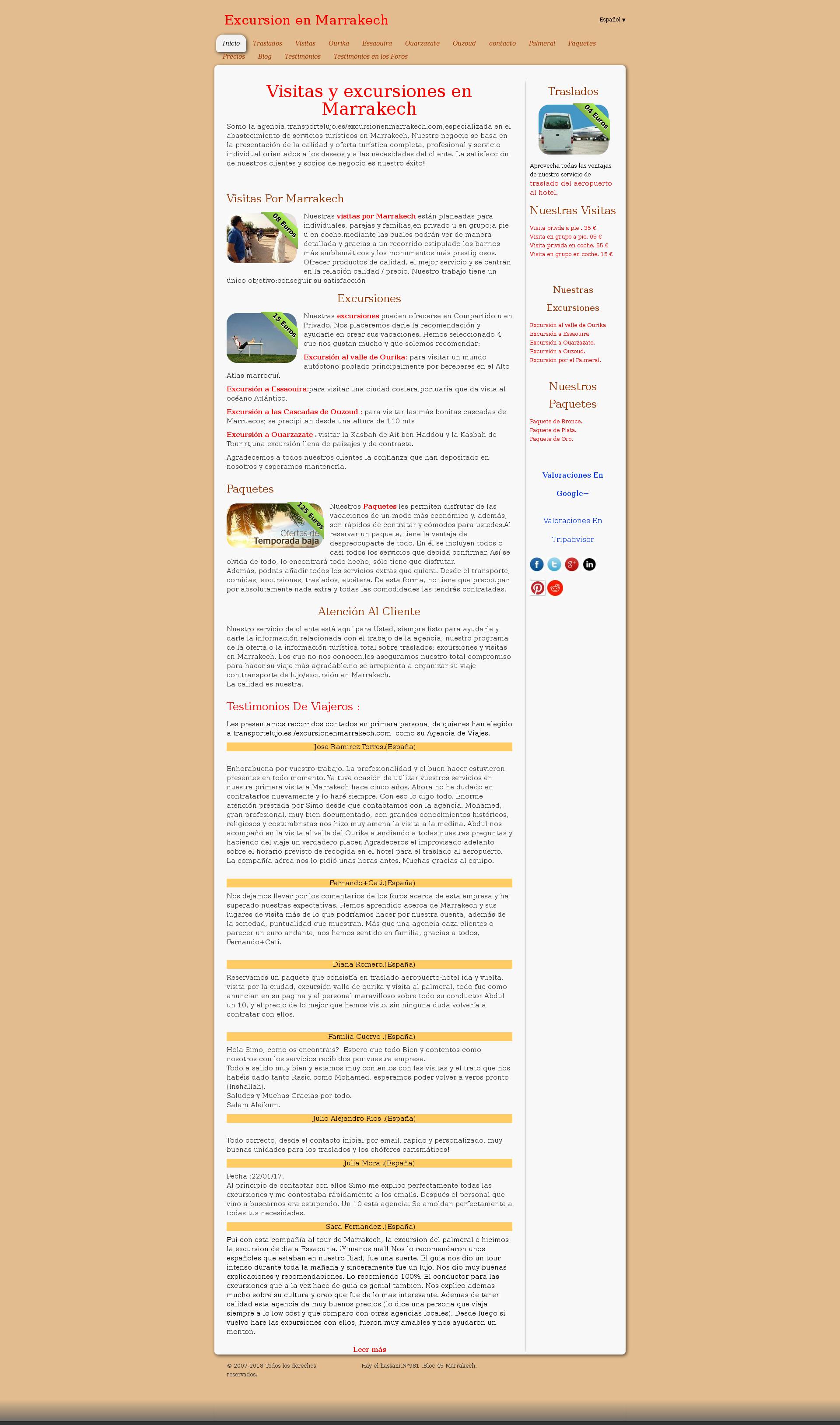 Somo la agencia transportelujo.es/excursionenmarrakech.com,especializada en el abastecimiento de servicios turísticos en Marrakech. Nuestro negocio se basa en la presentación de la calidad y oferta turística completa, profesional y servicio individual orientados a los deseos y a las necesidades del cliente. La satisfacción de nuestros clientes y socios de negocio es nuestro éxito!