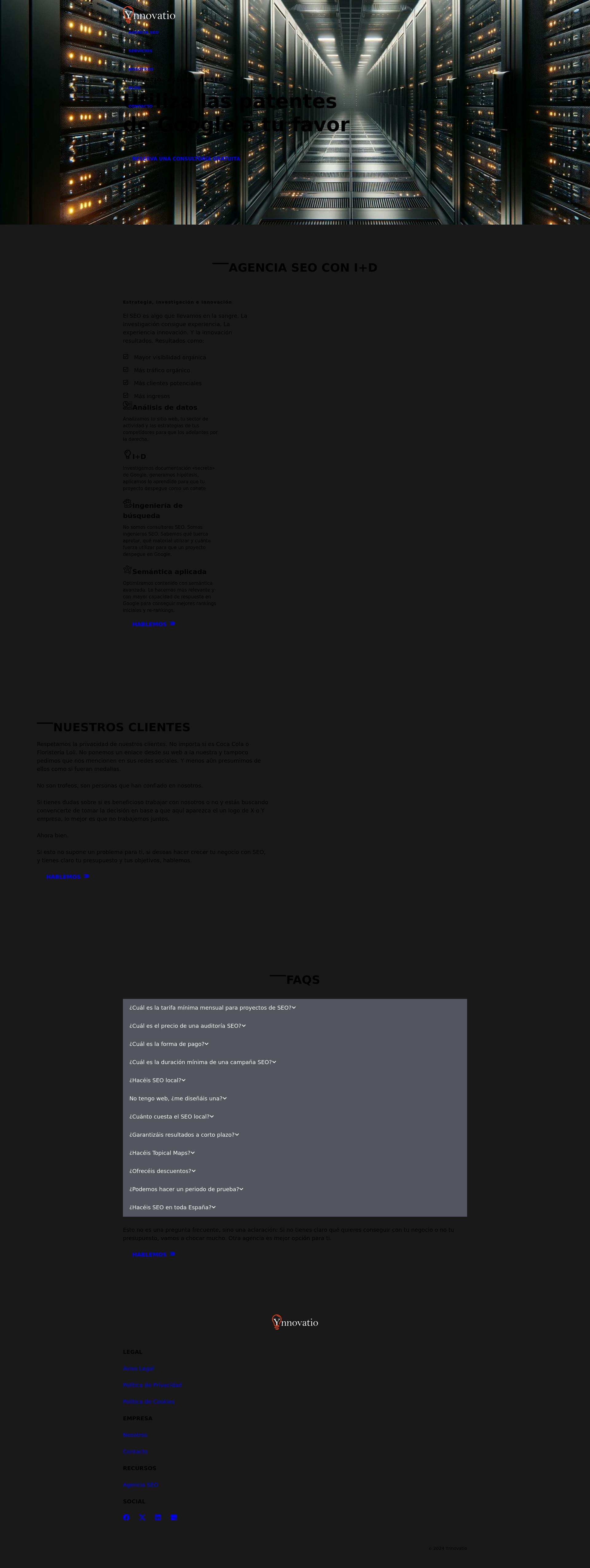 Ynnovatio es una agencia SEO que desarrolla proyectos digitales integrando código, NLP, análisis de datos, analítica digital, SEO técnico, SEO semántico y branding. Cada segundo de carga, cada pixel cuenta en tu sitio web. Para mostrar que tu marca tiene confianza y autoridad, necesitas optimizar la semántica de tus proyectos. La misión de Ynnovatio es mejorar la visibilidad de la marca y su crecimiento en motores de búsqueda. Ynnovatio Agencia SEO fue fundada por Yerai Lorenzo.